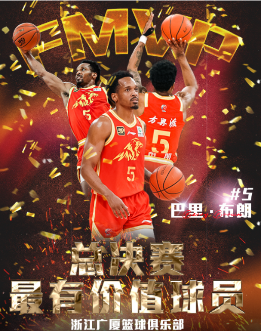 布朗不仅率领广厦夺得队史首座CBA总冠军,也是帮助广厦成为CBA历史第8支夺冠球队,他个人则是以超级表现成功夺得总决赛MVP。