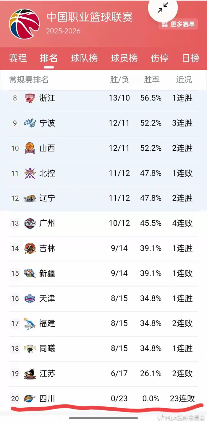 朋友们,今天咱们聊点扎心的,CBA有一支球队,赛季打到现在一场没赢,0胜23负,战绩表上简直“一尘不染”,没错,就是四川男篮,这局面已经不是“惨淡”能形容了,简直是开了历史倒车,遥想十年前,他们可是踩着豪强拿下总冠军的队伍,哈达迪、哈里斯那帮人风光无限,如今却落到这步田地,实在让人唏嘘。