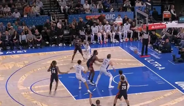 哈登运球干拔三分再中,开局3中3连砍8分3助攻