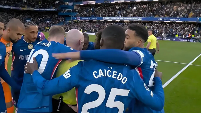 开篇即荒诞:围裁闹剧,暴露心态全面失衡。比赛尚未开打,切尔西11名首发球员便自发围圈,将主裁判保罗·蒂尔尼死死围在中央,帕尔默更是双手抱住裁判、眼神紧盯,试图在赛前就给裁判施加压力。这一幕迅速引爆舆论,切尔西名宿约翰·特里怒批:“小伙子们应该把他赶走,叫他滚开!” 看似团结的举动,实则是球队心态失衡的直接体现——一场关乎争四的关键战,球员未战先乱,寄希望于施压裁判而非自身实力,已然埋下溃败伏笔。真正的豪门,从不需要靠这种拙劣的方式寻求底气,唯有冷静沉稳,方能掌控赛场主动权。