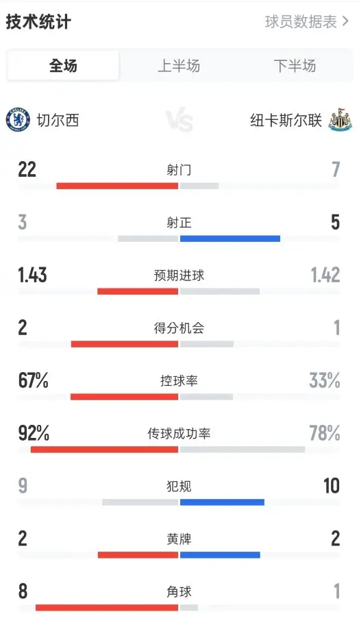战术硬伤:无效传控成瘾,攻防脱节致被动。全场数据呈现诡异反差:切尔西控球率67%、射门22脚,碾压纽卡的33%控球率和7脚射门,传球成功率92%也远超对手的78%,但这样的“优势”却未能转化为进球,反而被对手抓住一次反击一剑封喉。第18分钟,利夫拉门托直塞、威洛克横传助攻队友破门,这粒简洁高效的反击进球,狠狠戳破了切尔西传控战术的伪善面纱。球迷的吐槽直击要害:“别tm踢传控了,没这个能力懂不懂?能完美踢传控的也就巅峰巴萨西班牙了,你破车这帮什么人?也硬踢传控!” 蓝军的传控始终停留在“无效倒脚”层面,恩佐远射击中队友、里斯·詹姆斯任意球偏出、下半场击中立柱,看似运气不佳,实则是战术适配性不足、进攻缺乏穿透力的真实写照。